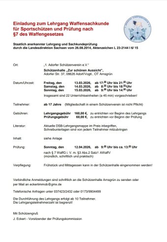 Der 1. Adorfer Schützenverein e.V. hat sich seit der Neugründung am 27.10.1990 sehr stark vergrößert. Er zählt heute mit 70 aktiven Mitgliedern zu einem der größten Schützenvereine im Vogtlandkreis.