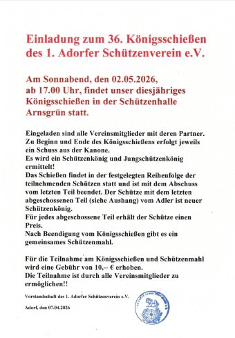 Der 1. Adorfer Schützenverein e.V. hat sich seit der Neugründung am 27.10.1990 sehr stark vergrößert. Er zählt heute mit 70 aktiven Mitgliedern zu einem der größten Schützenvereine im Vogtlandkreis.