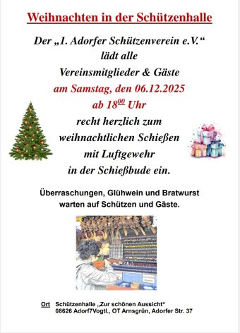 Der 1. Adorfer Schützenverein e.V. hat sich seit der Neugründung am 27.10.1990 sehr stark vergrößert. Er zählt heute mit 70 aktiven Mitgliedern zu einem der größten Schützenvereine im Vogtlandkreis.